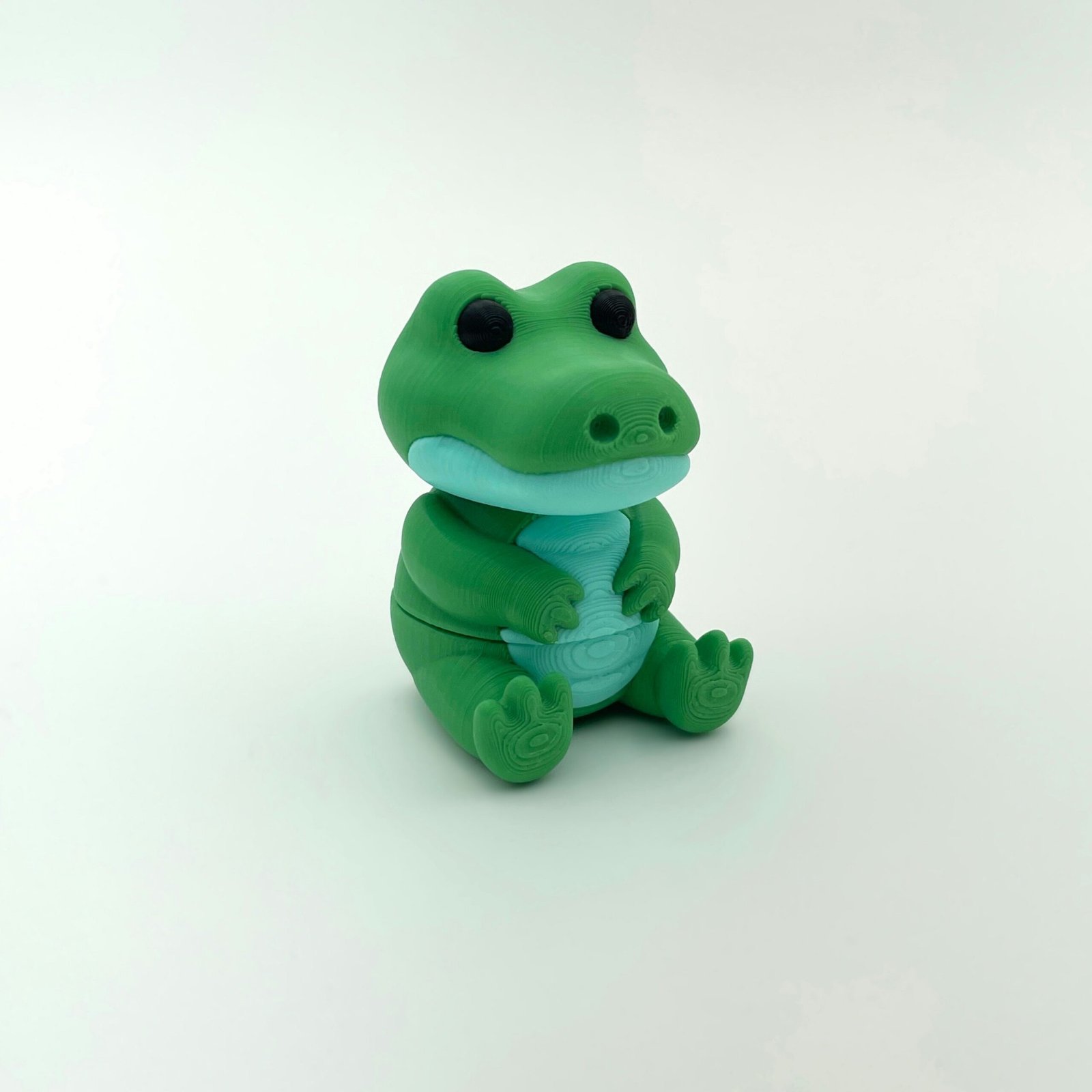 3D printed in vibrant green tones with smooth joint articulation.
