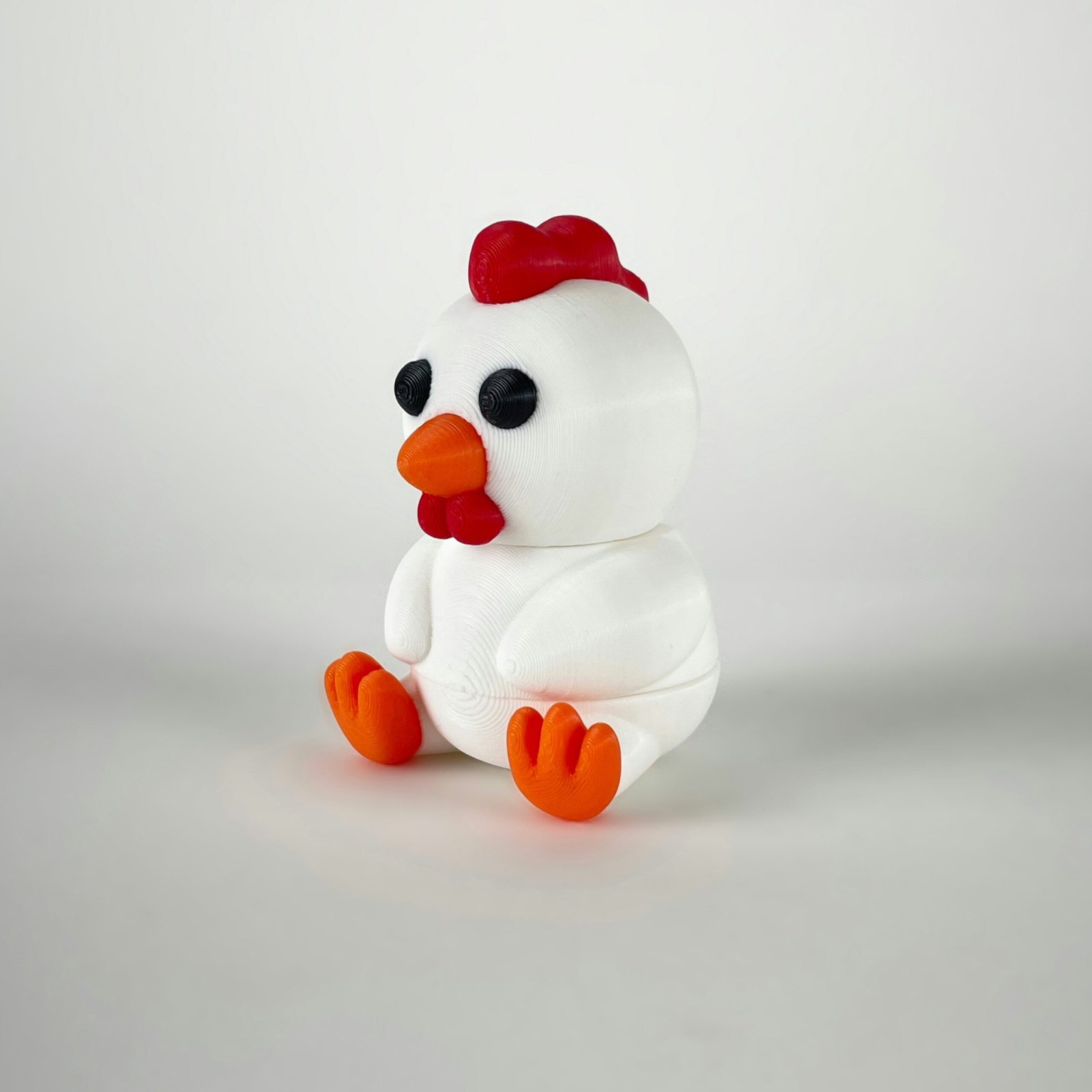 A cute articulated chicken keychain with flexible joints and bright details. Lightweight, fun, and perfect for keys, backpacks, or gifts.
