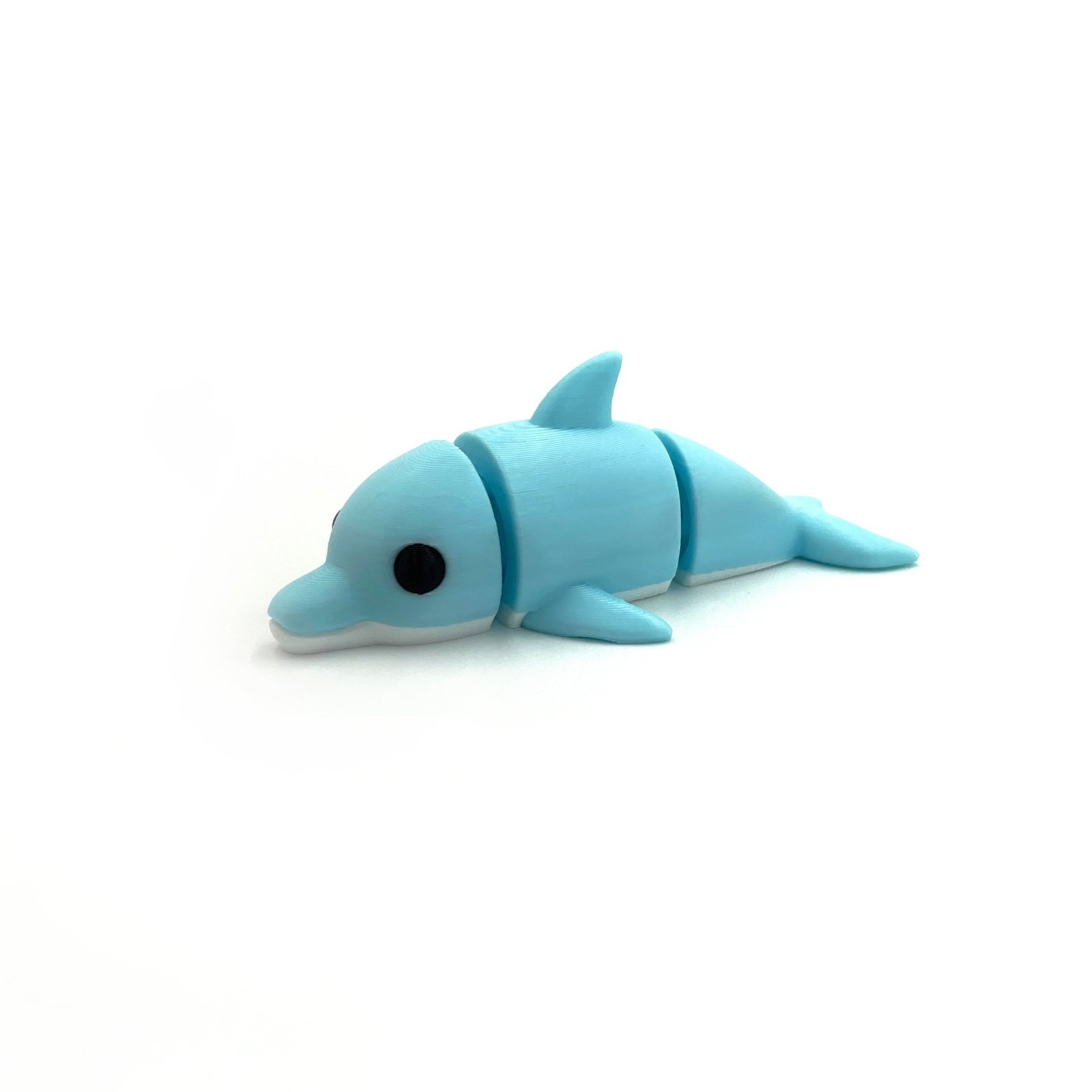 3D printed in light blue with a sleek dolphin design and flowing fins.